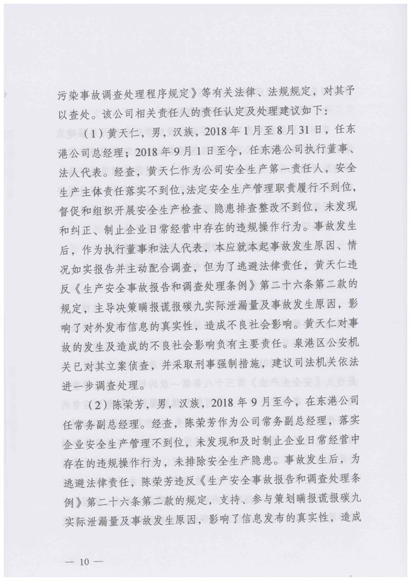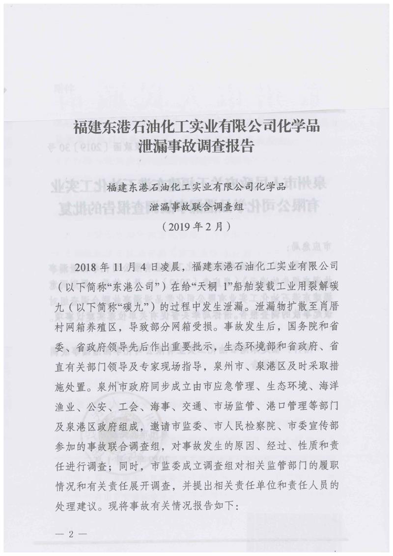 福建东港石油化工实业有限公司化学品泄漏事故调查报告